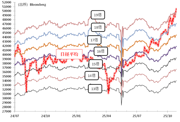 10月27日、日経平均は初の5万円乗せとなりました(終値50,512円)。この日の高値(50,549円)は注目レベルのひとつ[50,569円]をほぼ満たしています