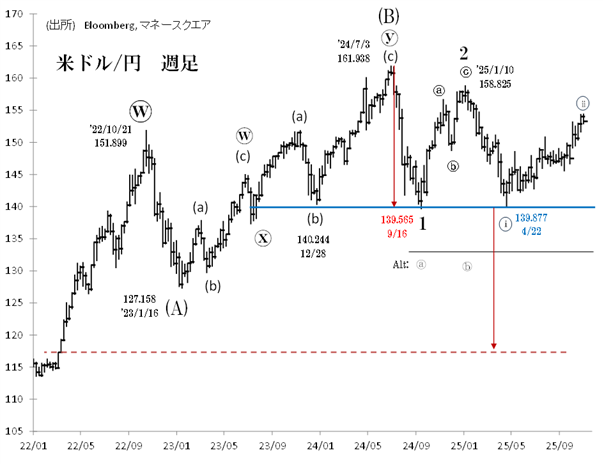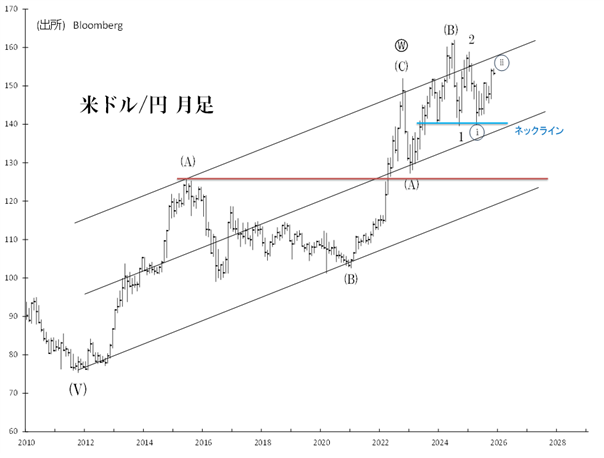 もっとも長期的にはドル安(Ⓑ波)基調は継続し、2026年には一段とドル安が強まるでしょう。