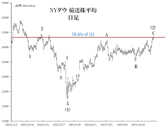 [ダウ輸送株平均] 4月からの戻り高値を更新