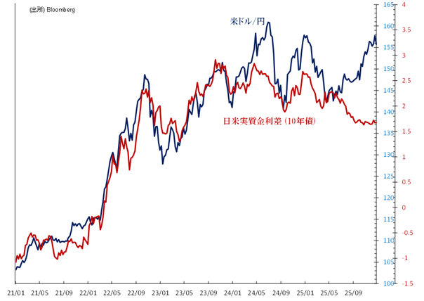 日米実質金利差から導かれるドル/円の水準は、現在1ドル=140円程度です。足元の日本円は金利差からみた妥当な水準よりも過小評価されており、歪みはいずれ修正される(ドル安・円高方向への)可能性が高いでしょう。