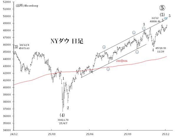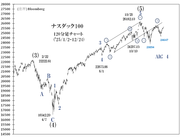 22,673(8/1安値)からのマイナー級第5波は26,182(10/29高値)で完成した可能性があります。この見方は24,647(12/18安値)を割ると強められます。