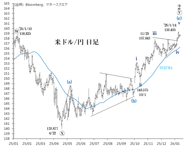 この先ポイントとなりそうなのが、50日MA維持の可否です。同MAは昨年12月中旬以降の強いサポートとして意識されており、同MAが維持される限りドル/円の基調は不変とみることができます。