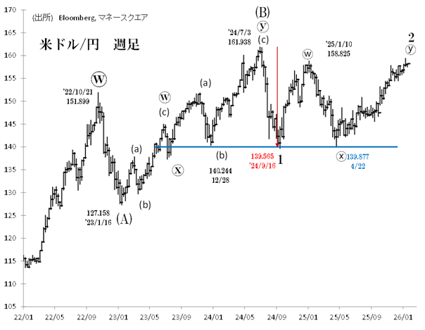 25年4月以来のドル高・円安波は、いつ終わってもおかしくなく、まもなく第3波によるドル安・円高が始まる見込みです。ひとたび第3波入りとなれば、それは2~3カ月という期間で140円処へ達する可能性もあるでしょう。