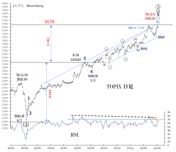 2月5日に1月15日に付けた高値3674を上回る、一時3686へ上昇し最高値を更新しました。