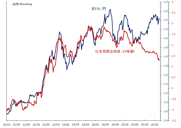 日米実質金利差から導かれるドル/円の水準は、現在1ドル=137円-139円です。足元の日本円は金利差からみた妥当な水準よりも極端な過小評価が続いています。