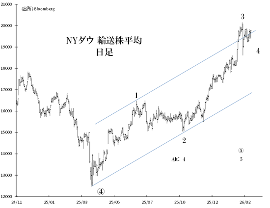 [ダウ輸送株平均] 第4波「保ち合い相場」が展開中か