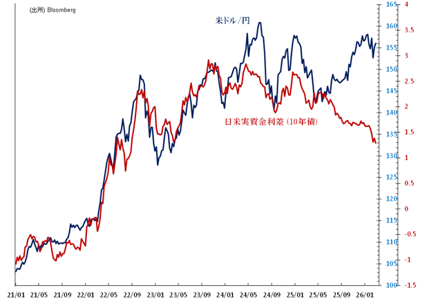 日米実質金利差から導かれるドル/円の水準は、現在1ドル=137円-139円です。足元の日本円は金利差からみた妥当な水準よりも極端な過小評価が続いています。