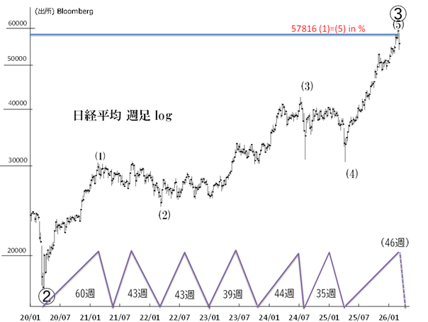 59,332円を付けた2月26日(2月第4週)は25年4月底から46週目です。
