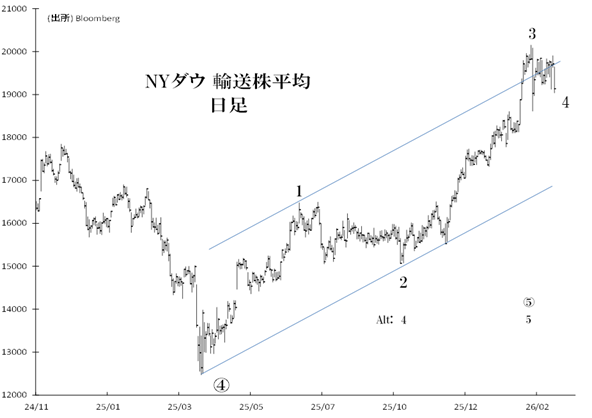 [ダウ輸送株平均] 第4波「保ち合い相場」が展開中か