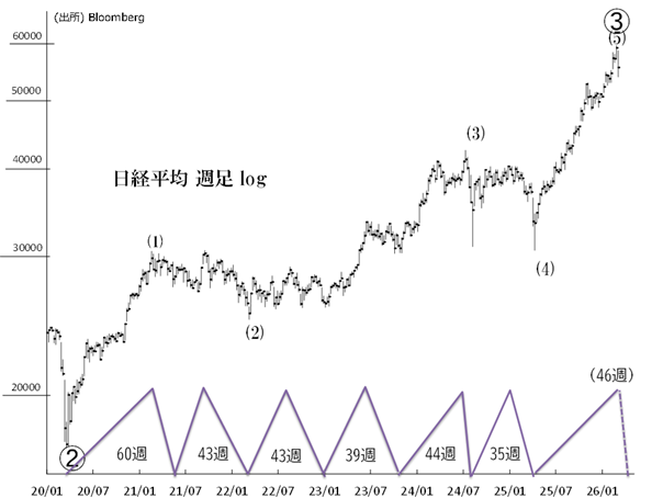 今年2月26日(25年4月底から46週目)に日経平均は過去最高値・59,332円を付けました。