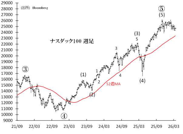 【ナスダック100 月足・週足 エリオット波動分析】