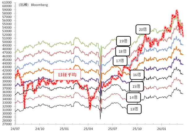 昨年10月高値(26,182)と今年1月高値(26,165)とで、3カ月越しのダブル・トップを完成。そこから弱気の展開が始まりました。3月21日には一時23,759と25年9月以来の安値を付けています。
