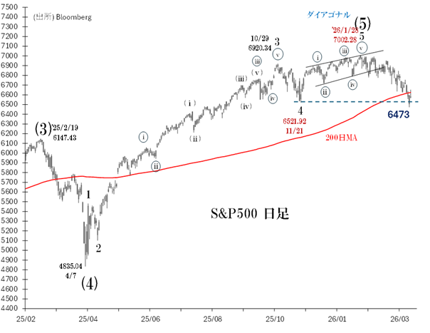 3月20日安値6473は「エンディング・ダイアゴナル」の始点(6521)を満たしています。想定していた最小限の下値メドは達成されました。