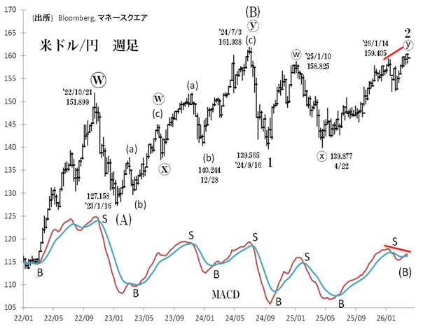 3月末には1年8カ月ぶりに1ドル=160円を付けました。24年9月安値(139.565円)からの第2波リバウンドは終わりつつあり、第3波によるドル安・円高開始は近い、とみています。