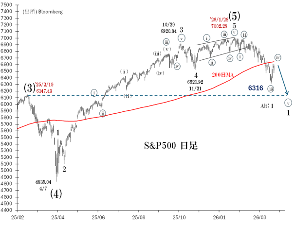200日MAを明確に下回ったことを契機に、機械的な売りが膨らんできたようです。3月30日には一時6316まで下げ、200日MAから5%近く下振れました。