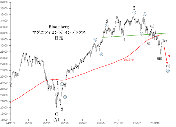 [マグニフィセント7] リバウンド完了から第(v)波の下落が始まる?