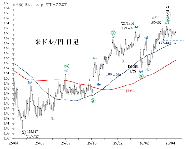 25年4月からのドル高・円安はⓦ-ⓧ-ⓨ-ⓧ-ⓩ「トリプル・ジグザグ」とみられます。