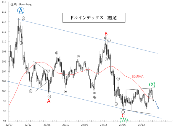 25年4月からのドル高・円安はⓦ-ⓧ-ⓨ-ⓧ-ⓩ「トリプル・ジグザグ」とみられます。