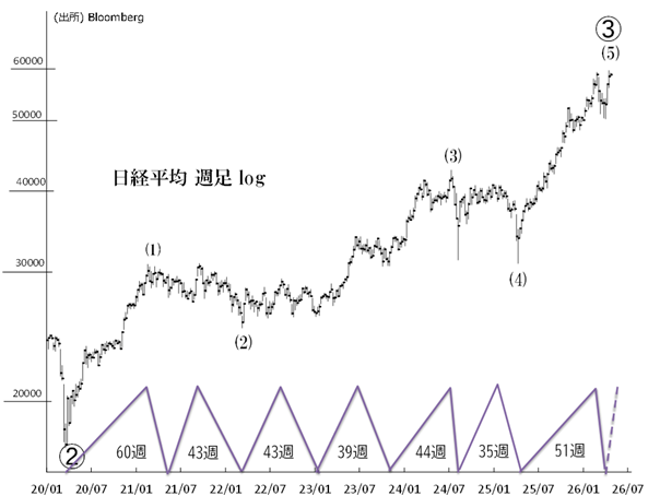 (※)週次サイクル期間(2020年以降の補正後)は45週±8週(37週~53週)。サイクルの高値から安値まで、下げ率は10%~26%(平均17%)。